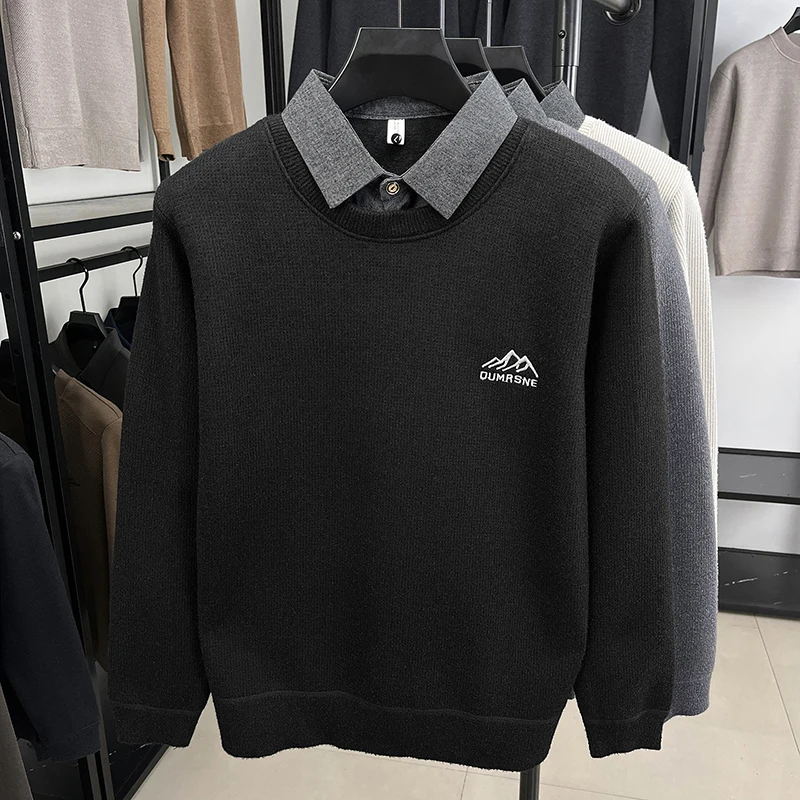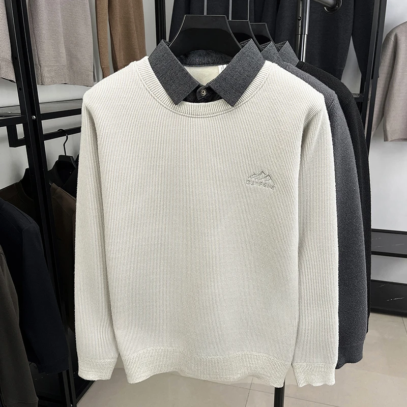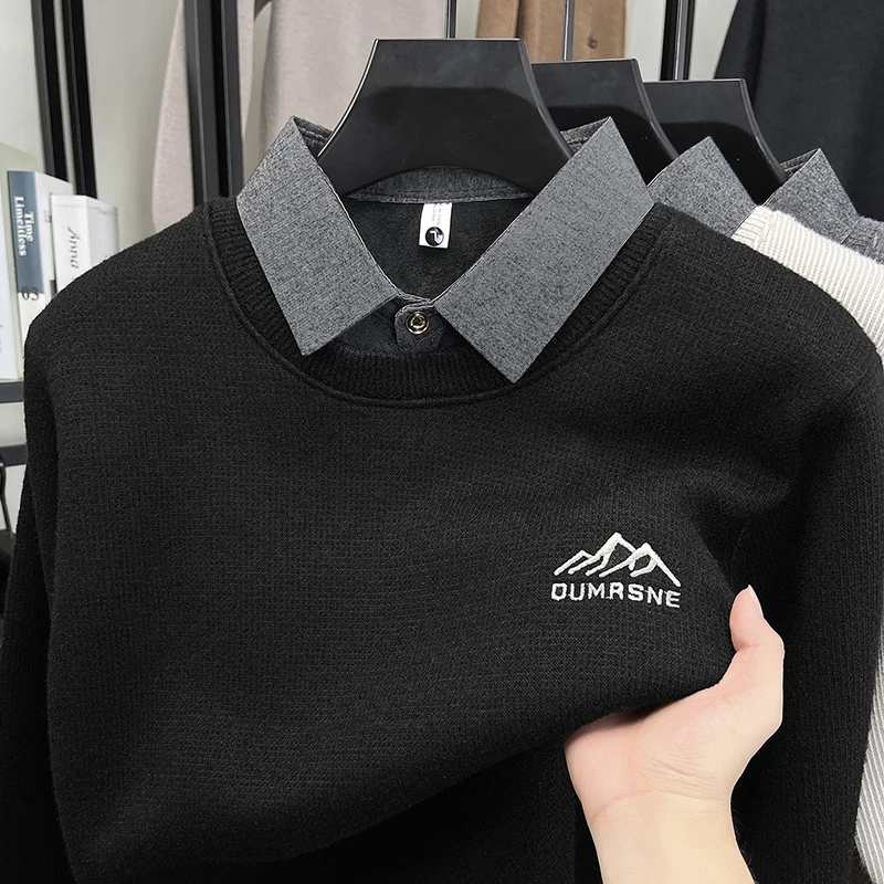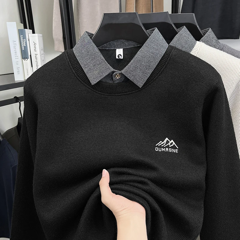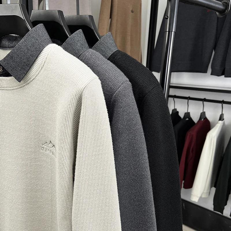 2025 New Men's Ferret Fleece Sweater Winter Collection Thick Knitted Sweater with Velvet Sweater Loose Round Neck Sweater