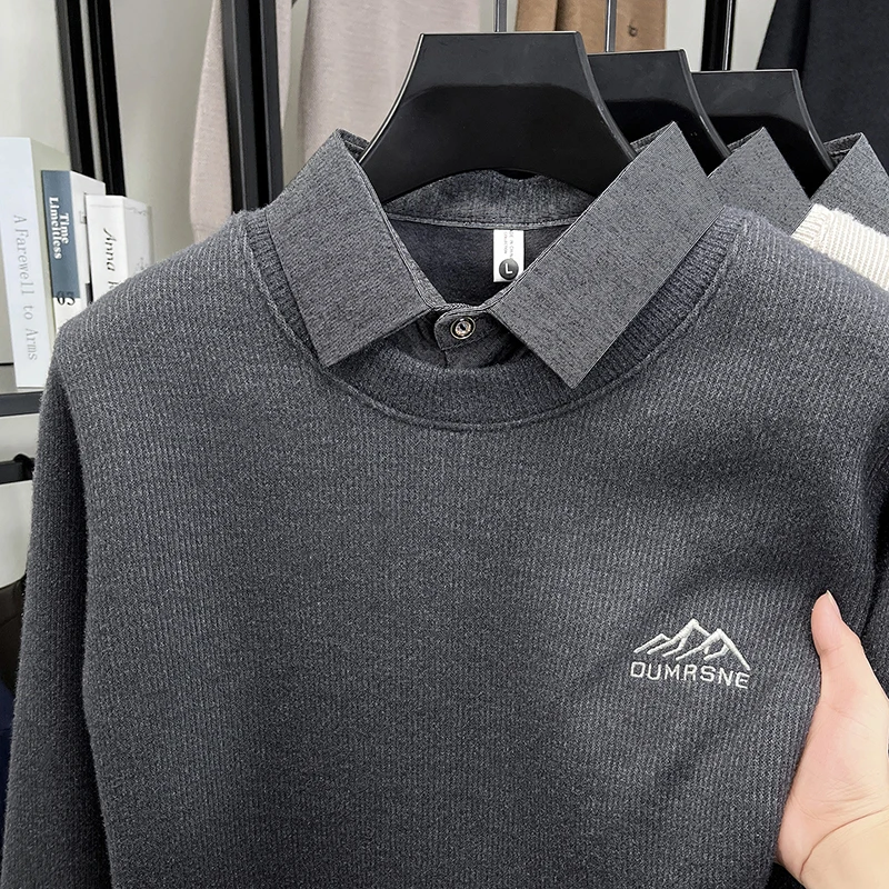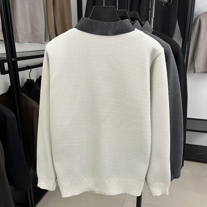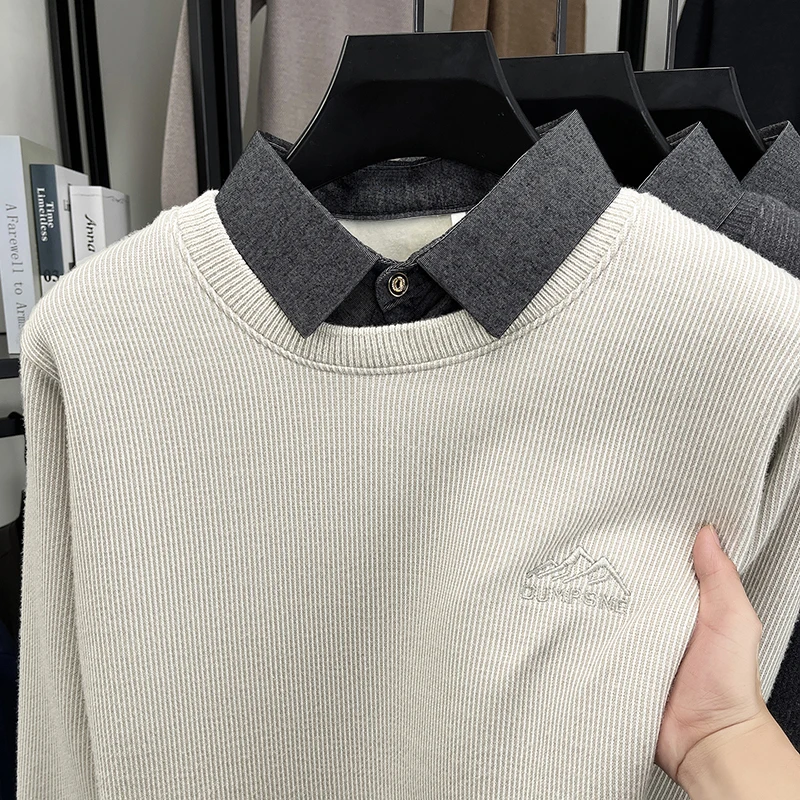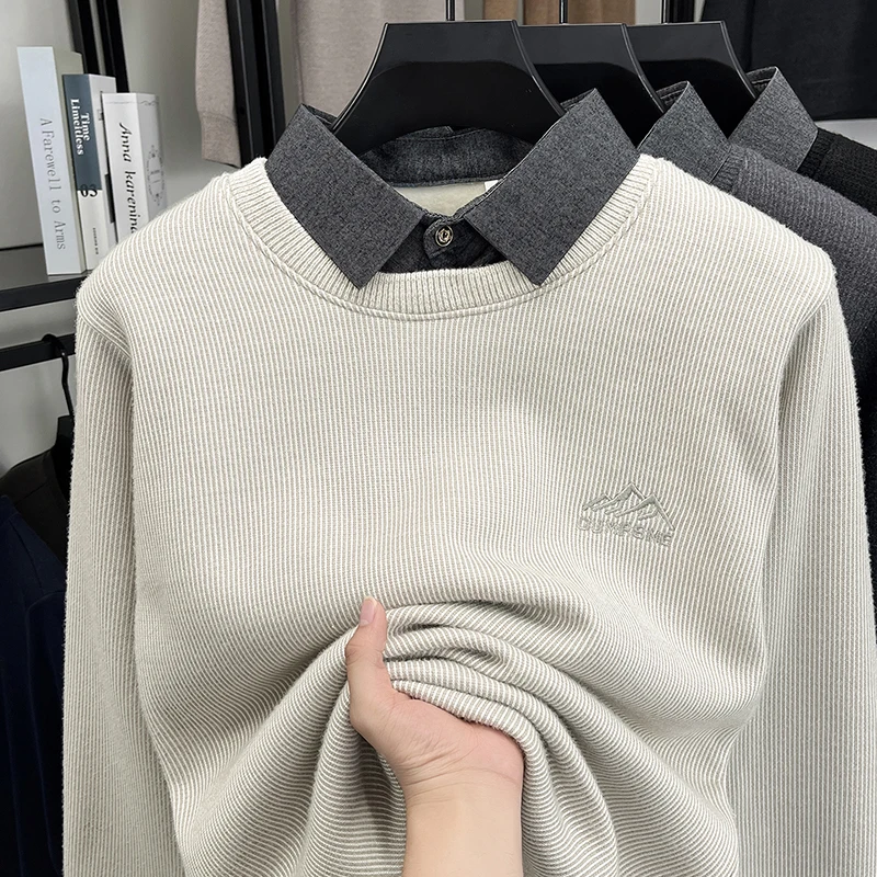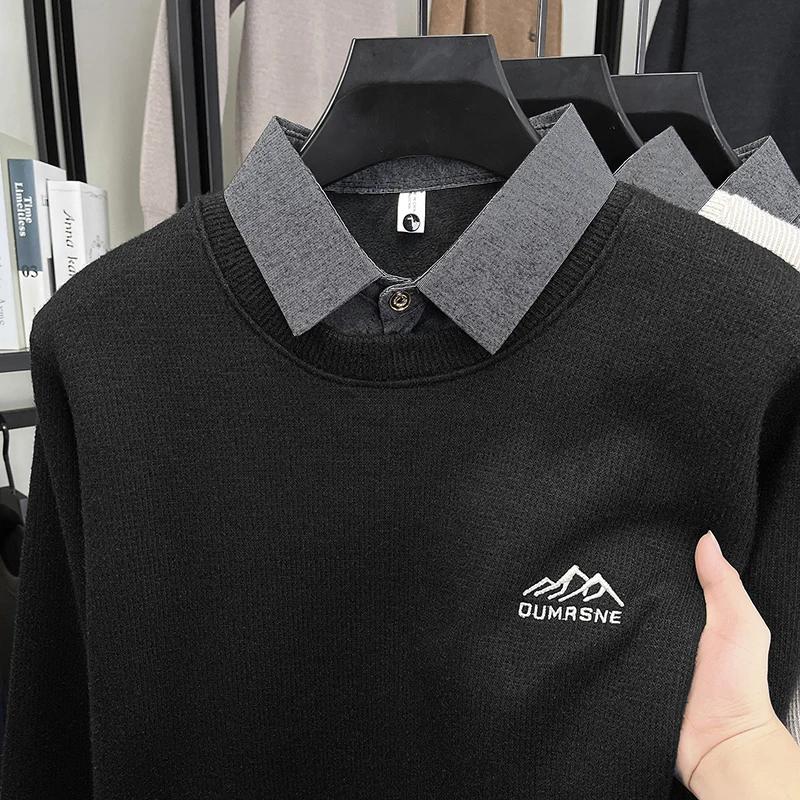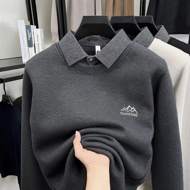 2025 New Men's Ferret Fleece Sweater Winter Collection Thick Knitted Sweater with Velvet Sweater Loose Round Neck Sweater