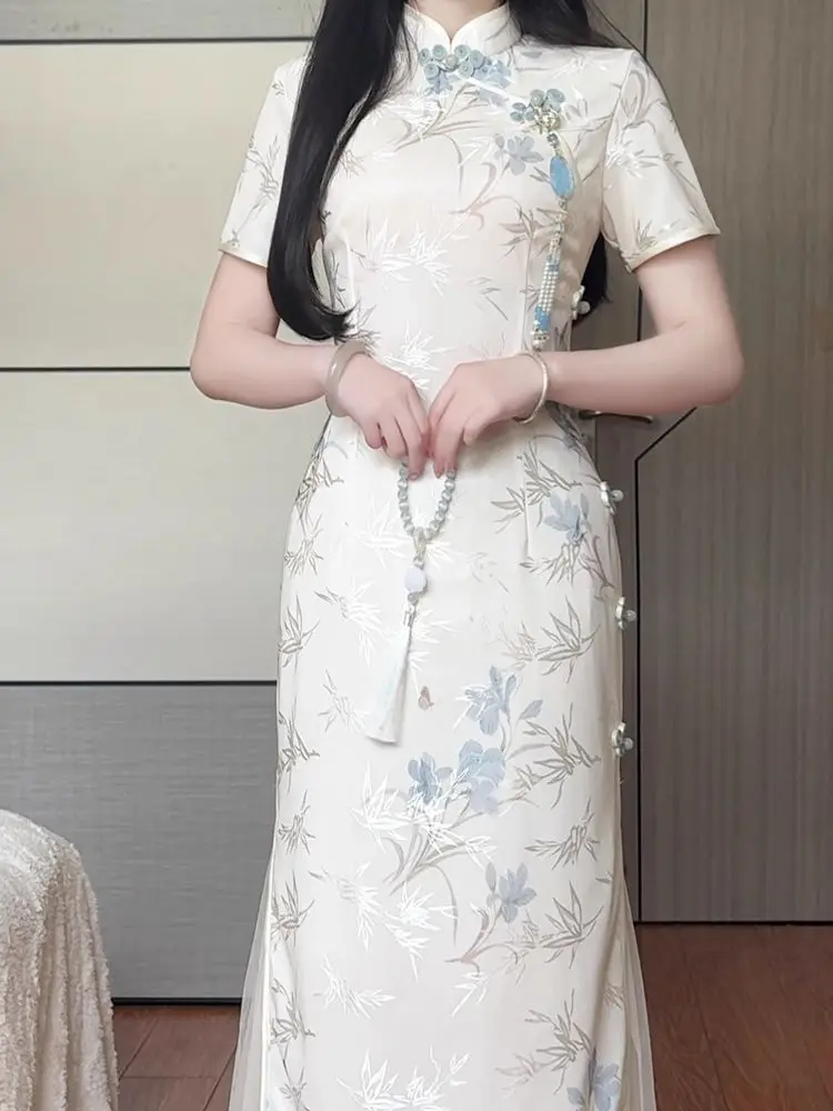 Chinese Cheongsam Dress - Elegant Modernized Long Skirt, High-End Traditional Outfit for Women
