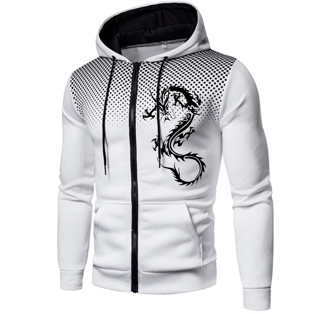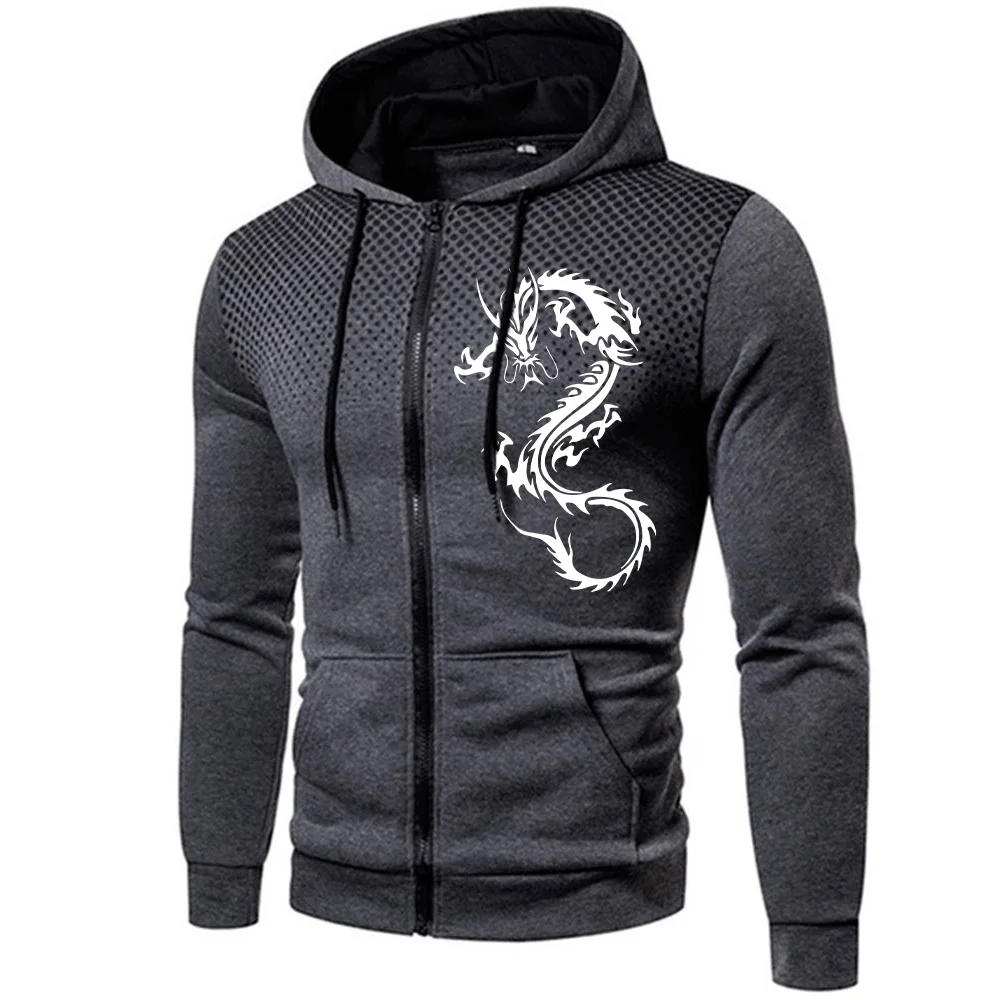 Chinese Dragon Pattern Hoodie for Man High Quality Hooded Long Sleeve Zipper Jacket Autumn Winter Male Casual Sport Jogging Coat