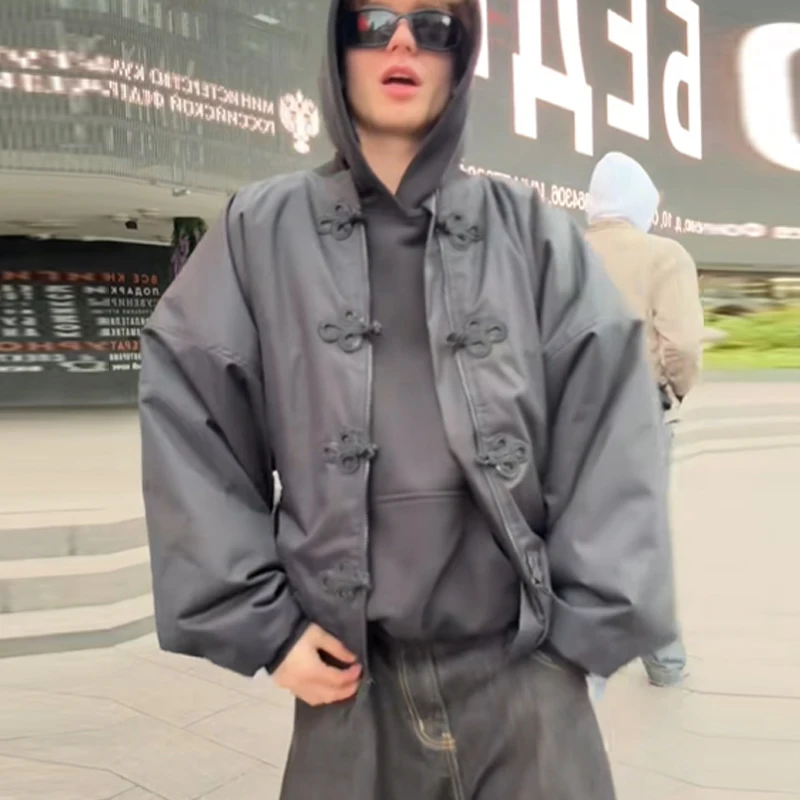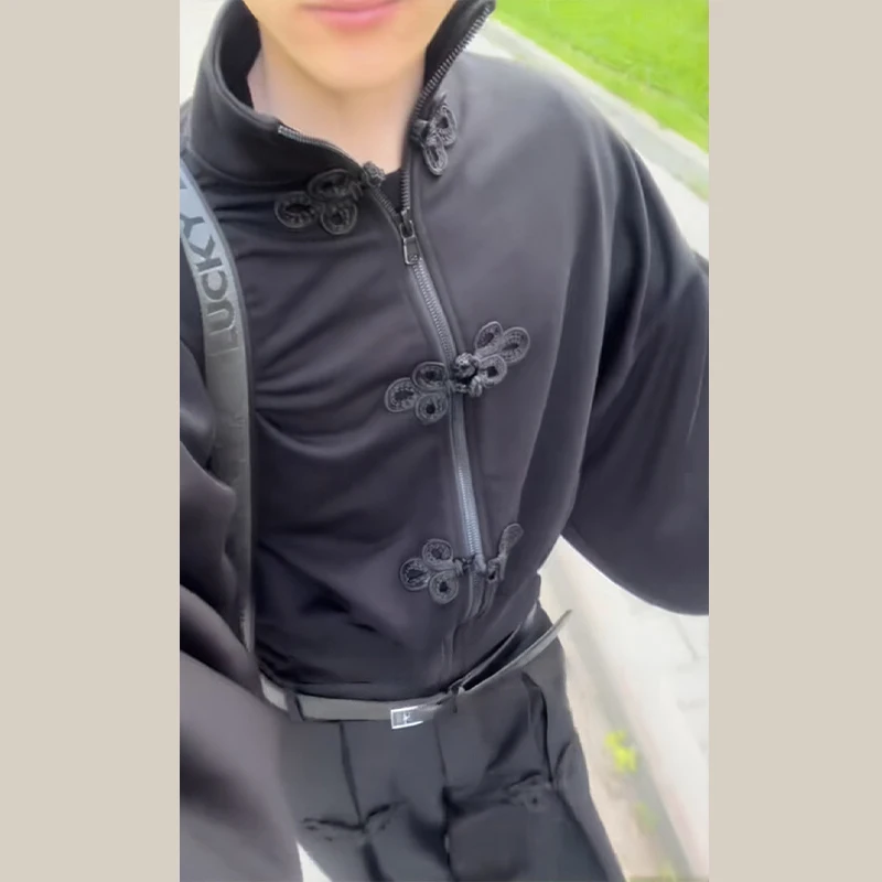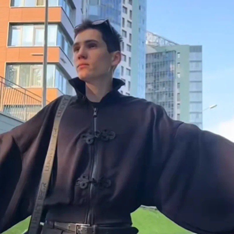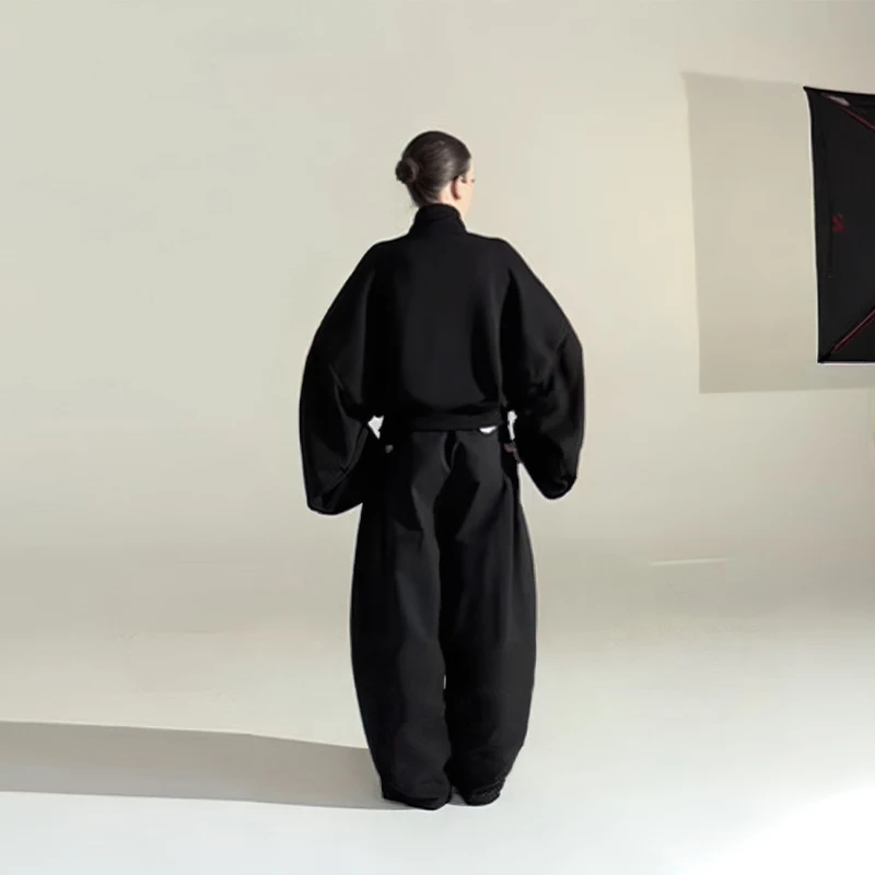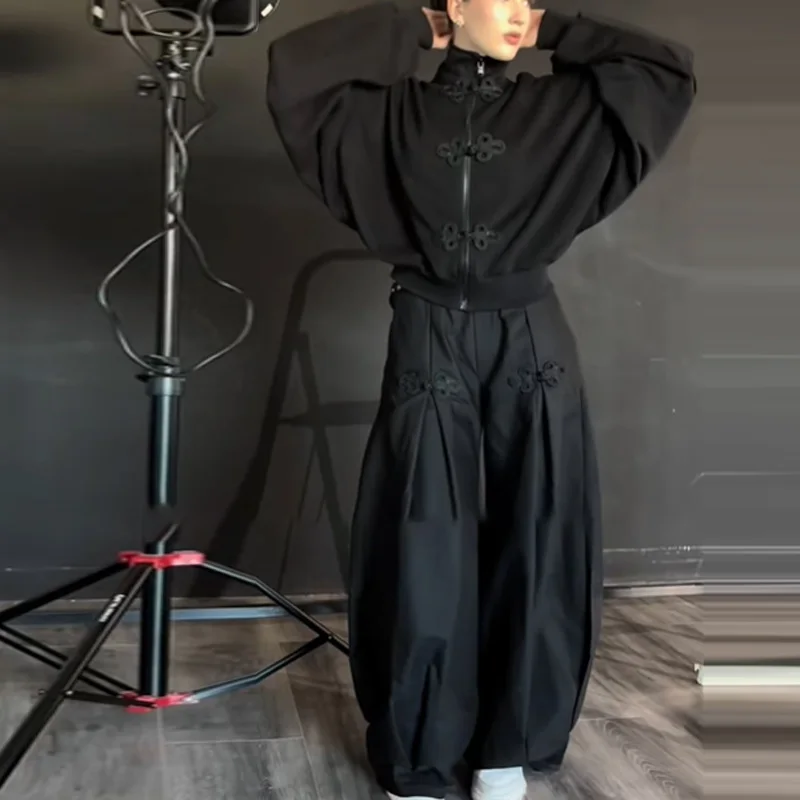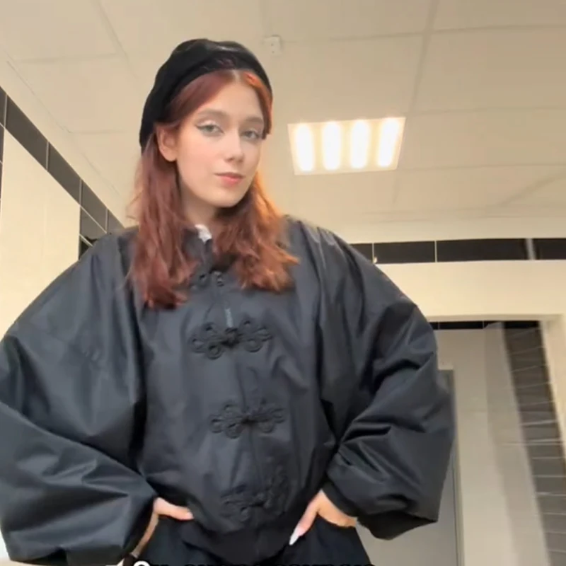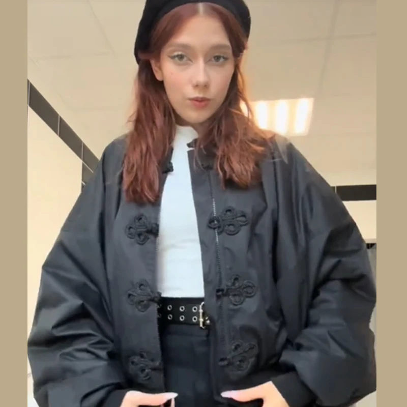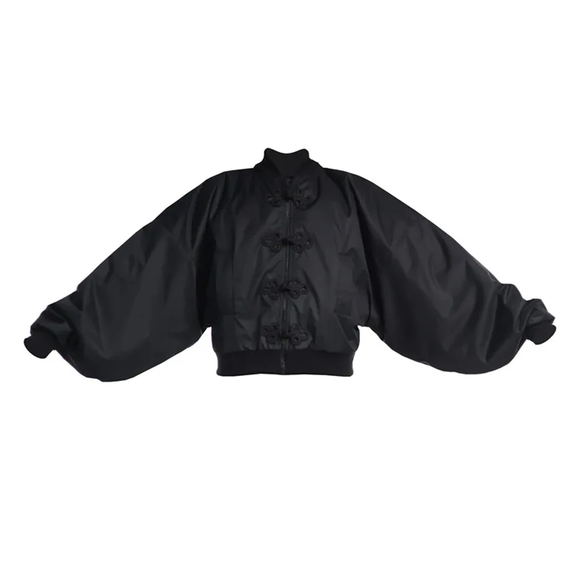 Chinese Knot Button Short Jacket Women Wide Sleeve Zipper Coat Stand Chic Fashion Outwear 2025 New Autumn Stylish Lady Coats