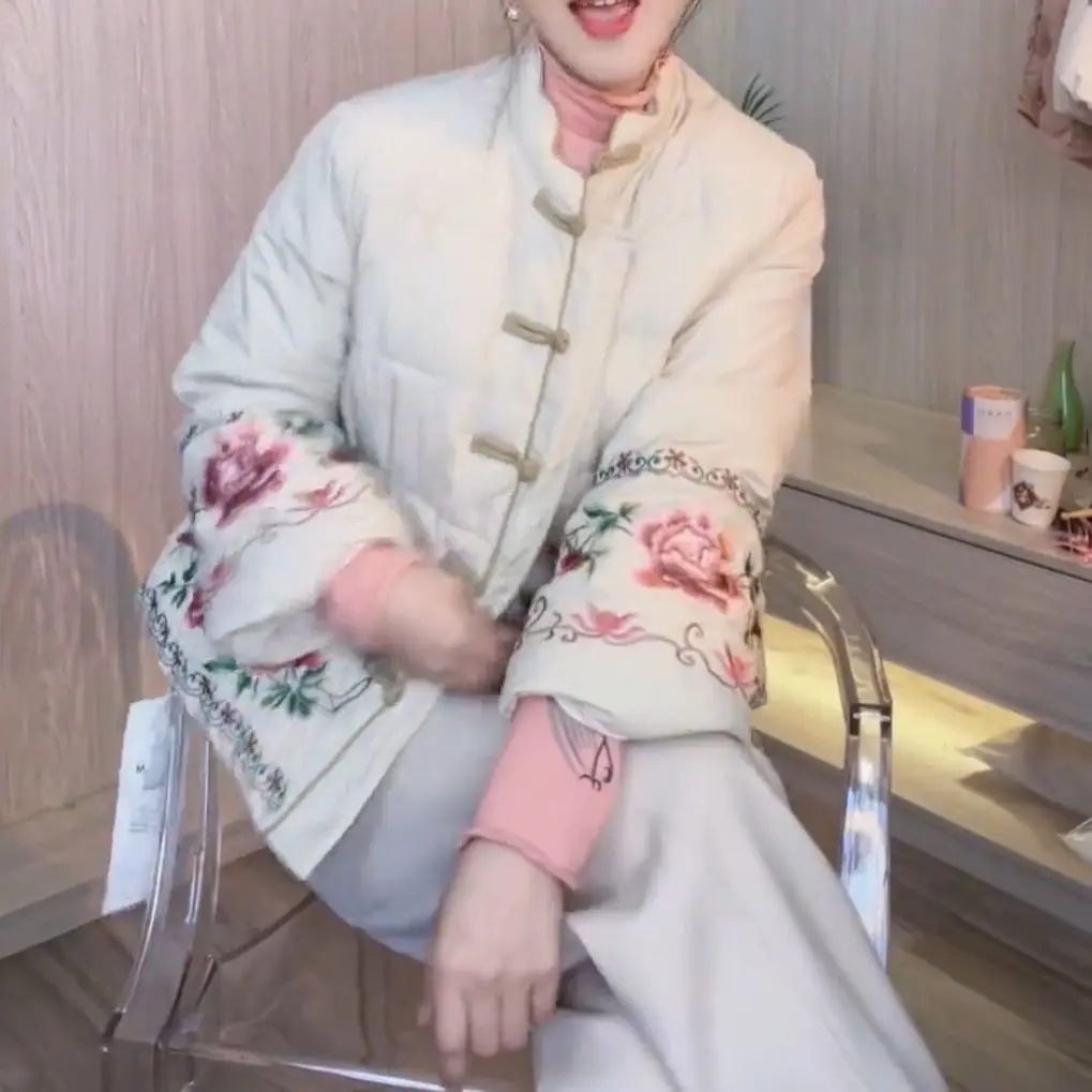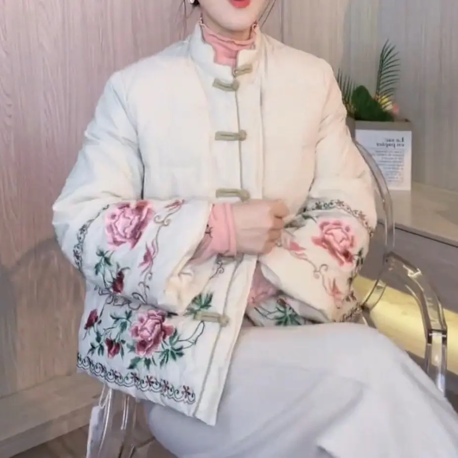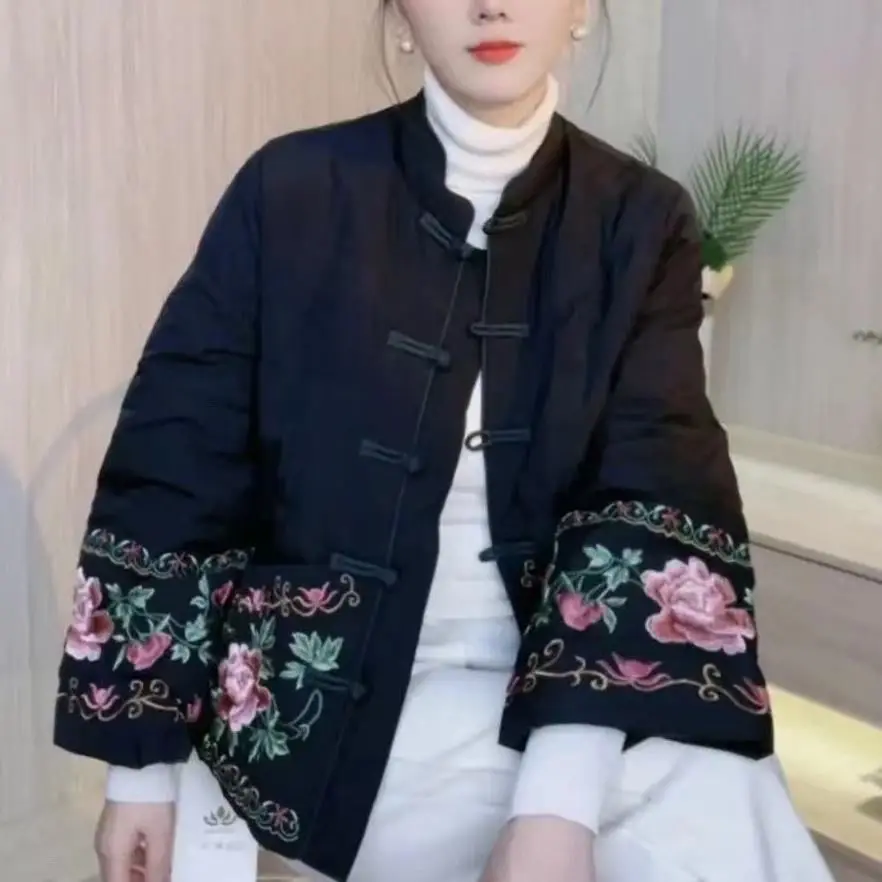 Chinese Style Retro Tang Style Cotton Jacket Women 2025 New Autumn Fashion Pink Womens Coat Casual Female Winter Clothes