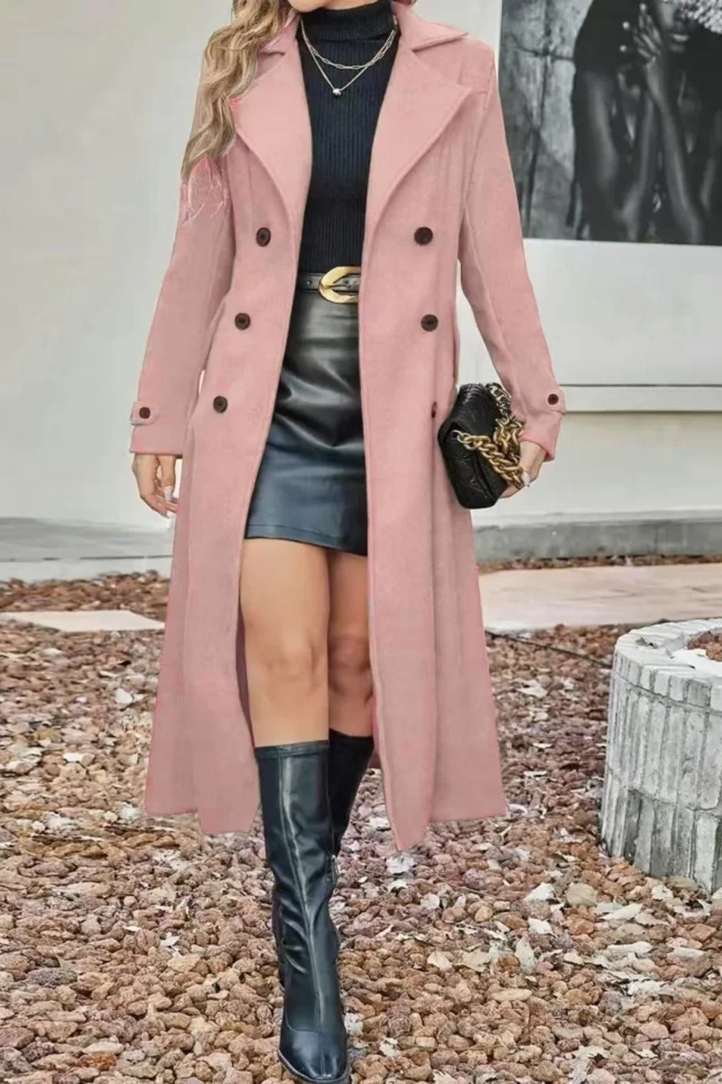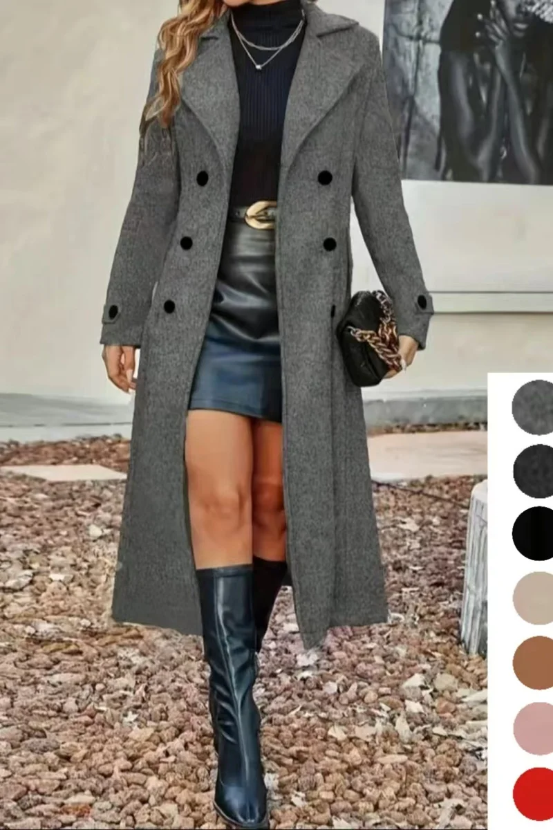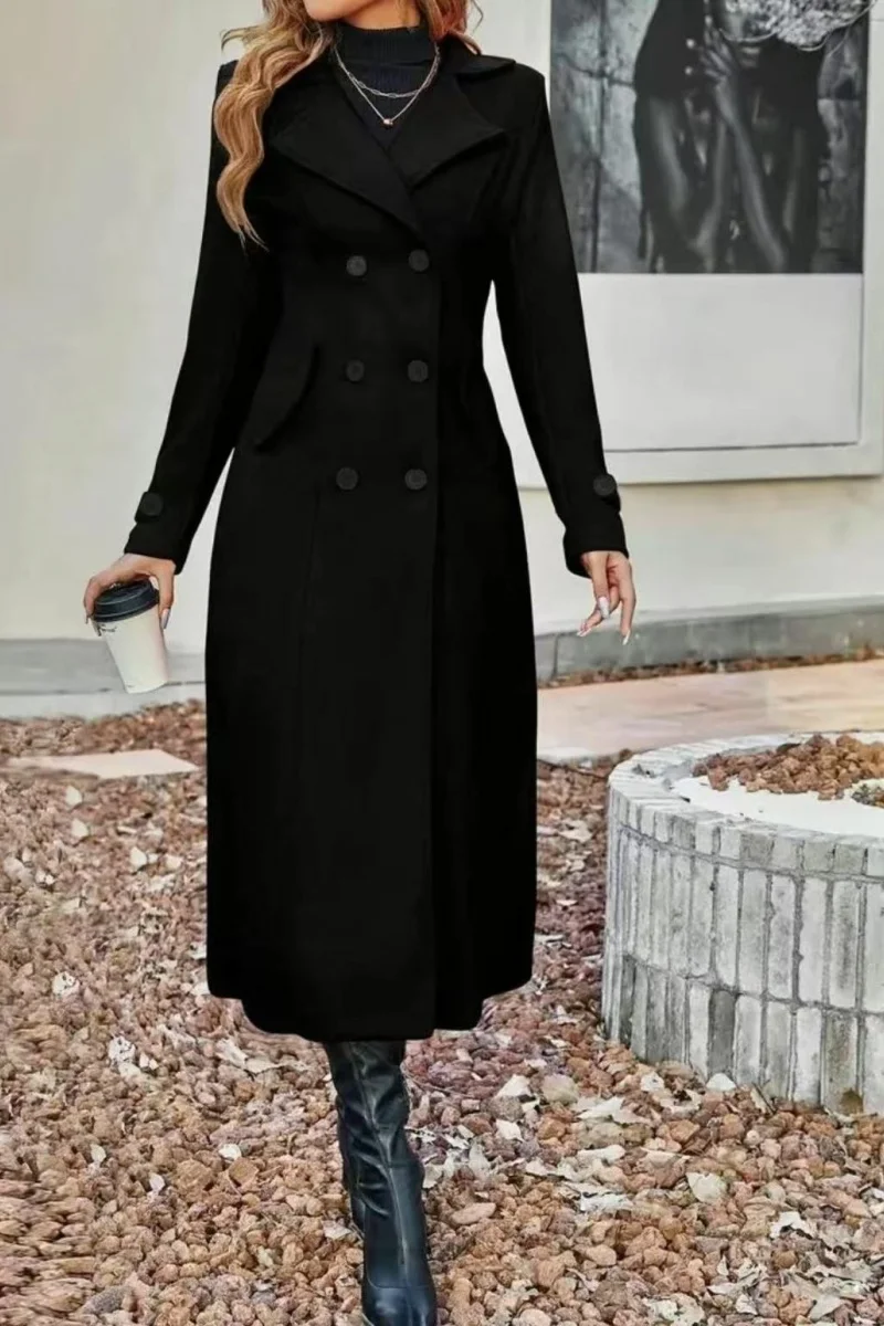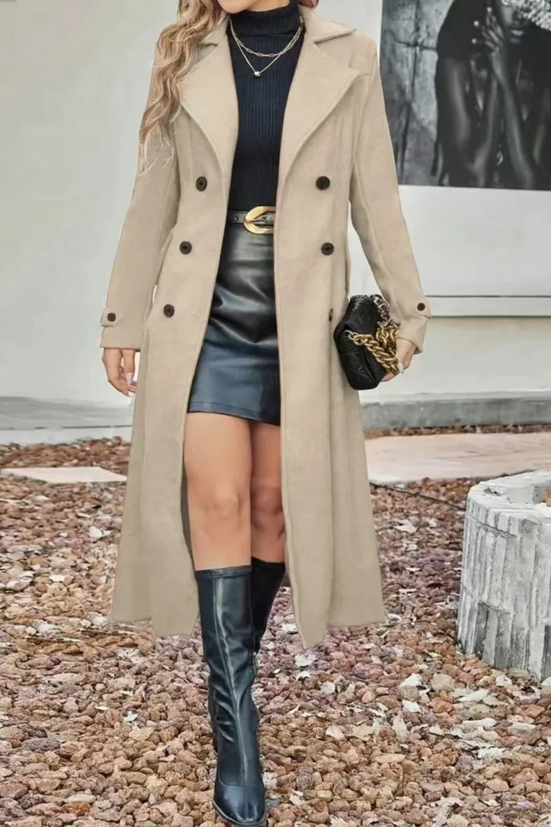 European and American autumn and winter fashion women's lining double-breasted woolen coat, temperament women's slimming over-th