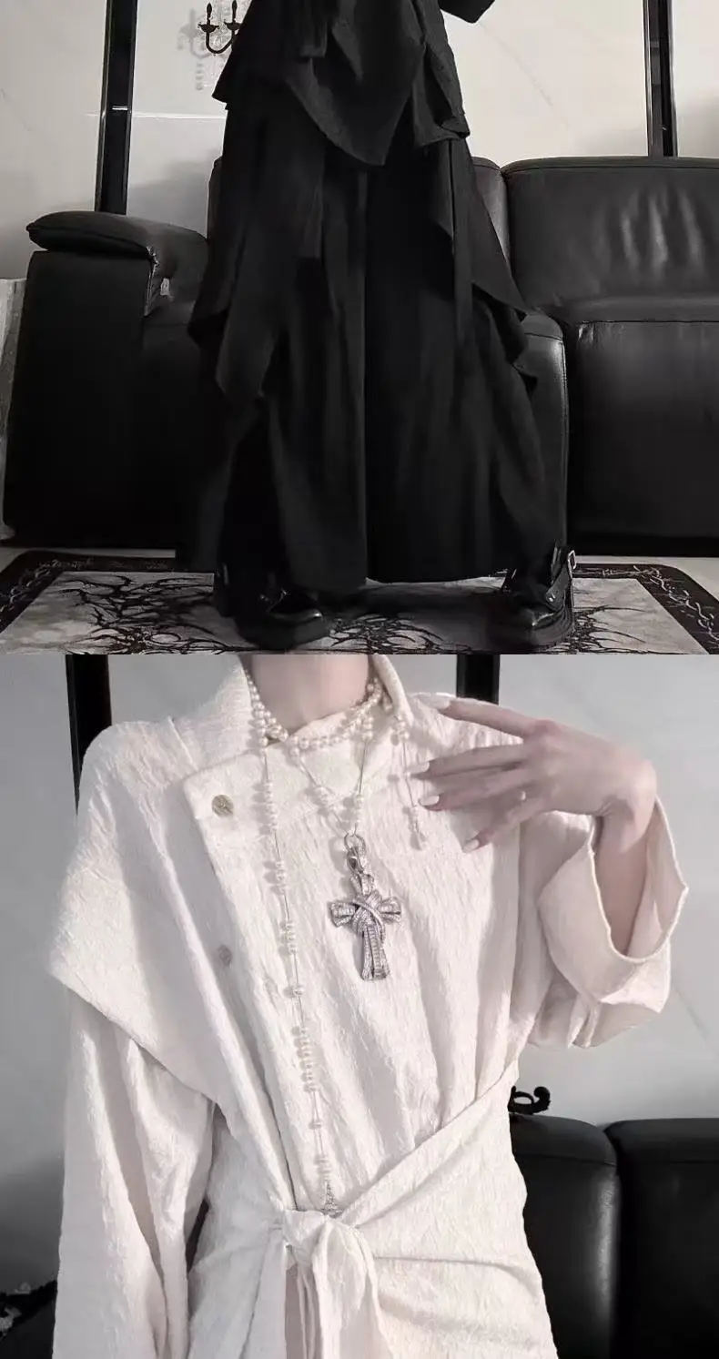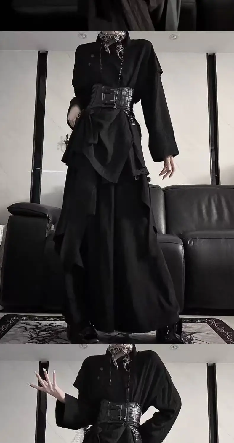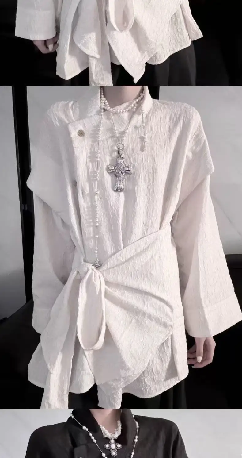 Niche Dark Black Costume New Chinese Style Long Sleeved Slanted Strap Top Shirt Vintage Bisex y2k Fashion Outfits Trendy Cool