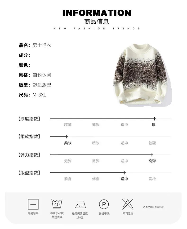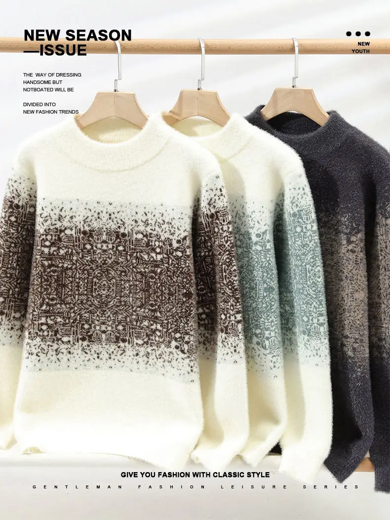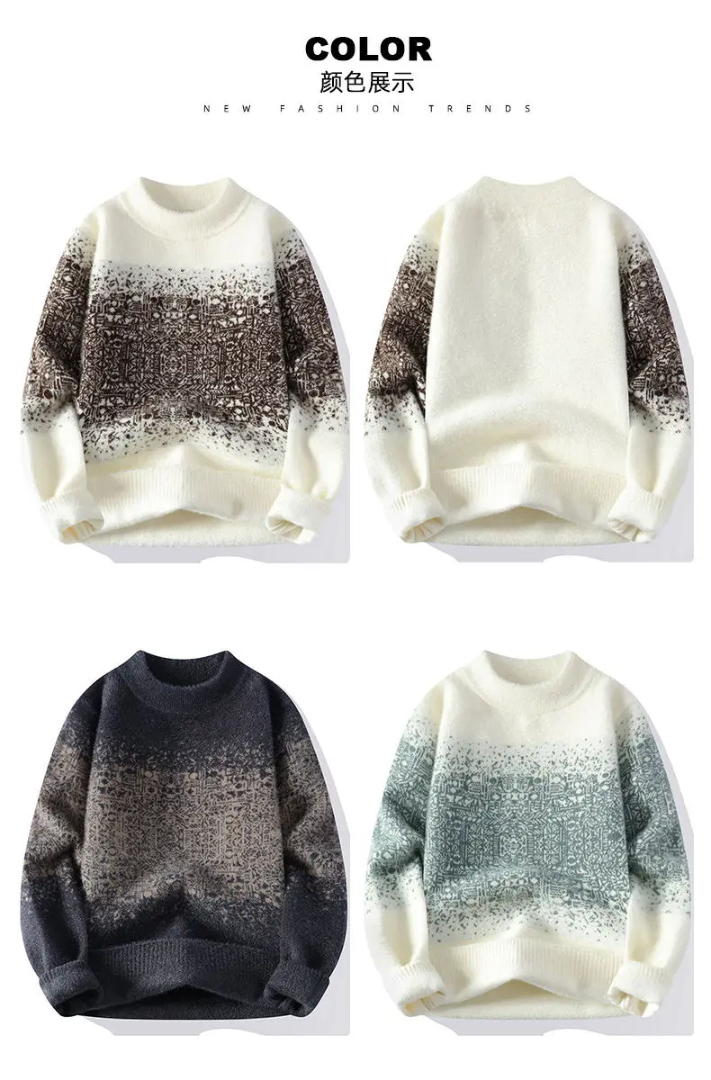 Retro Contrasting Men's Brand Clothing/ Autumn Winter Casual Cashmere Knitted Pullover/ Men's Warm Round Neck Base Sweater