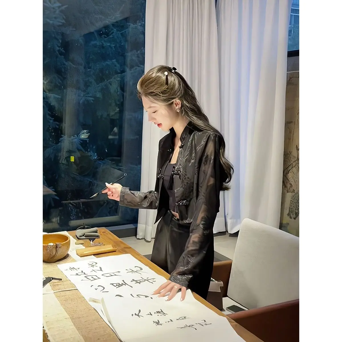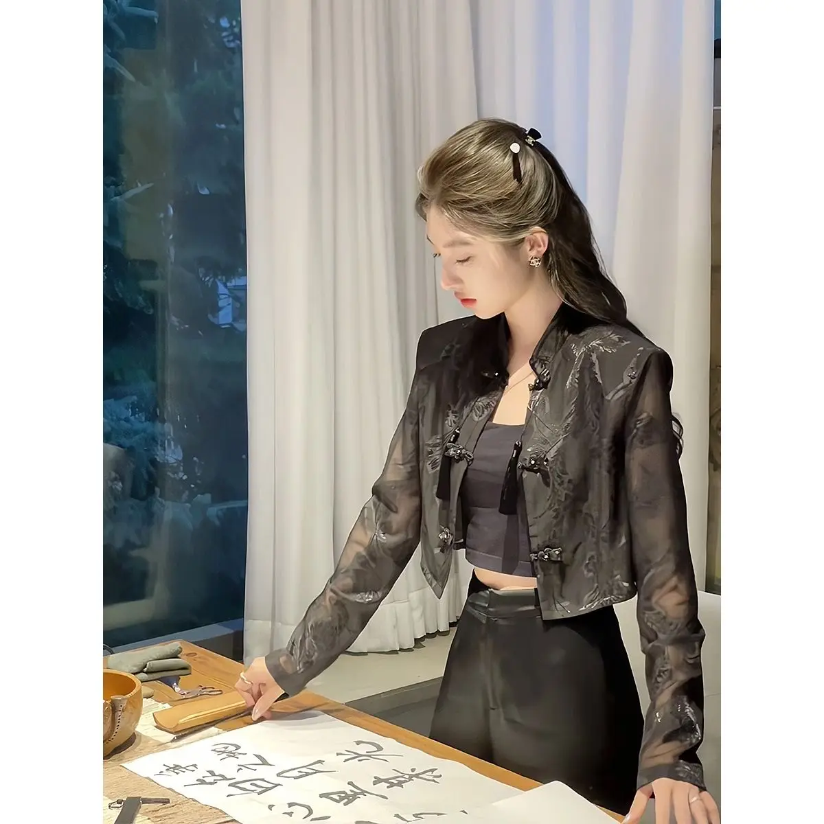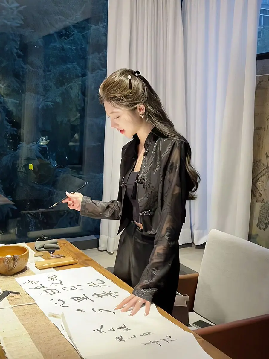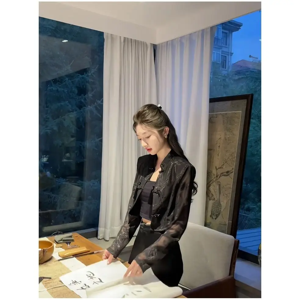 Summer tang suit top shirt qipao jacket chinese style suit costume lady Long-sleeved sunscreen shirt elegant lady cheongsam tops